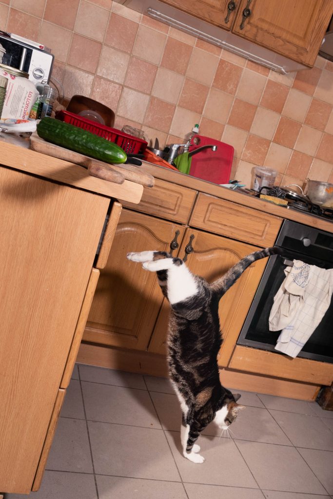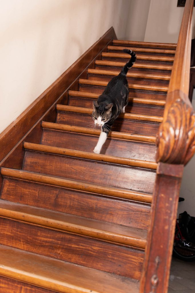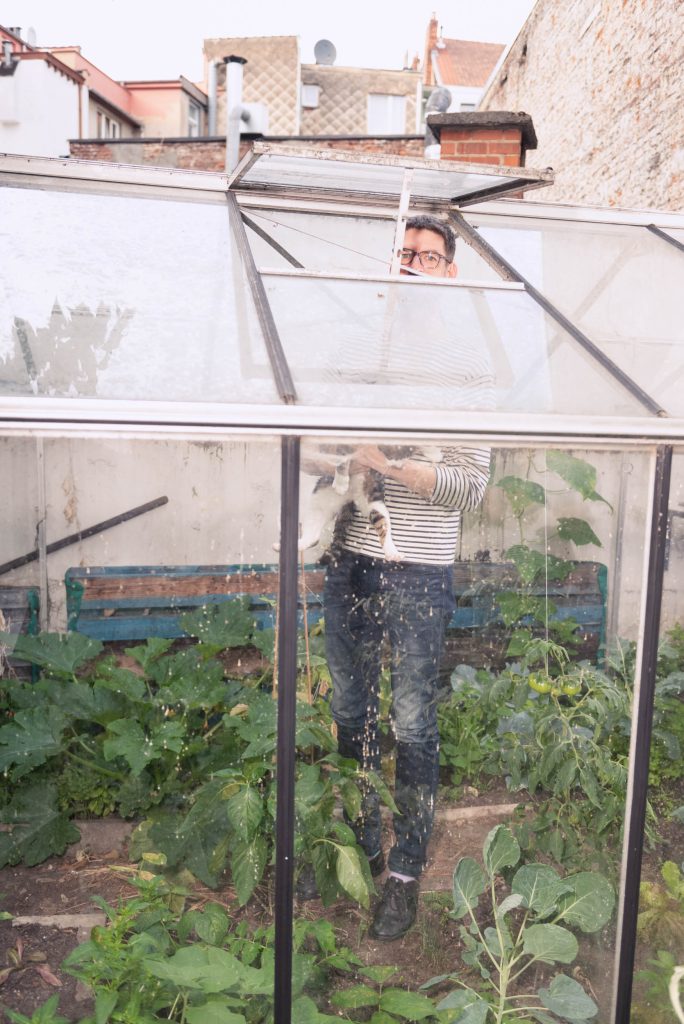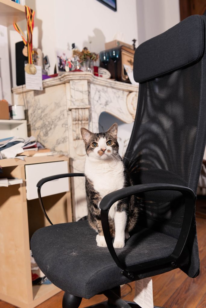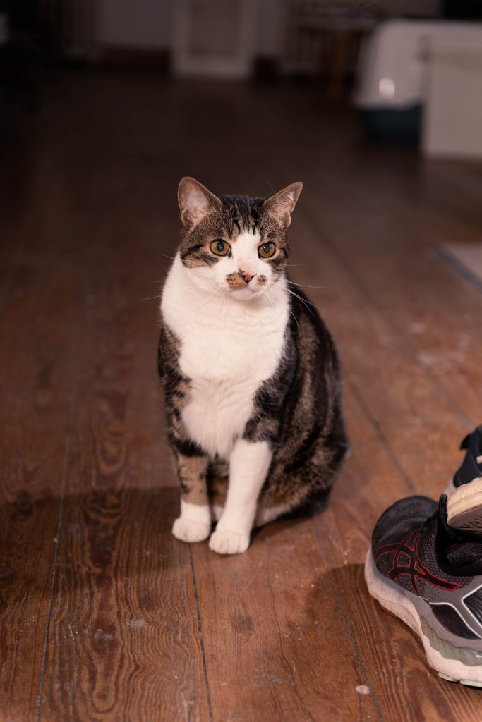 Family portrait of Jérémy, Eoin and their cat Chipo.